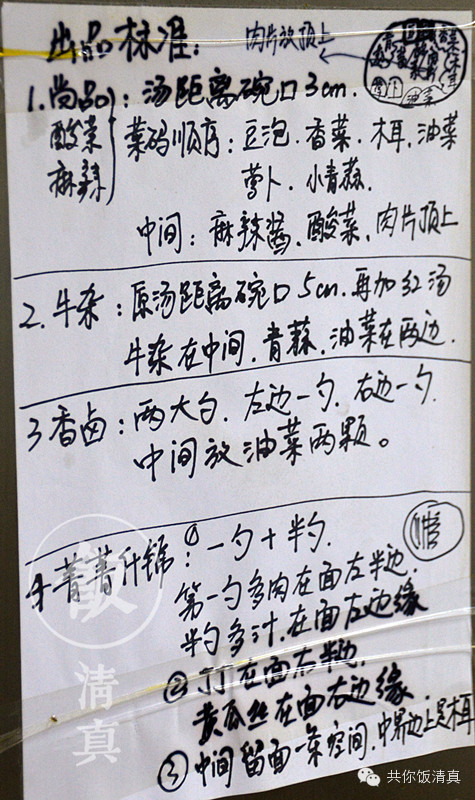 面館平均每?jī)扇找笠淮闻H?,馬菁菁都會(huì)親自在場(chǎng),從調(diào)料的選取到撇肉沫的時(shí)間,她都要精益求精,她說(shuō),只有把每一個(gè)細(xì)節(jié)都做好,最后你端給顧客的才會(huì)是一碗好面。在“三十輻”后廚的冰箱上,貼著兩張馬菁菁手寫的貼士,一張寫著店里出品的標(biāo)準(zhǔn),例如:每碗牛肉面,湯要離碗口三厘米。另外一張則是每天店面開始正式營(yíng)業(yè)前店員需要完成的具體工作。