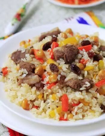 鷹嘴豆抓飯的做法也不復雜,由紅黃胡蘿卜、羊肉、洋蔥、大米等等燜制而成。