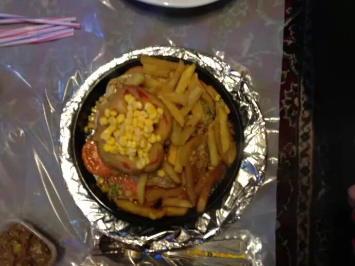 實際上我們常見的羊肉串,也是一種簡化了的Kebab,土耳其叫“Shish Kebab(KABOB)”,就像麻辣燙是火鍋的簡化一樣。也不奇怪,本來我國的羊肉串源自新疆等地,同受阿拉伯文明的影響。不知道新疆的維吾爾族人是不是也稱羊肉串為SHISH KEBAB。SHISH KEBAB同羊肉串一樣,已不局限于肉類,也常同茄子之類蔬菜一起烤。