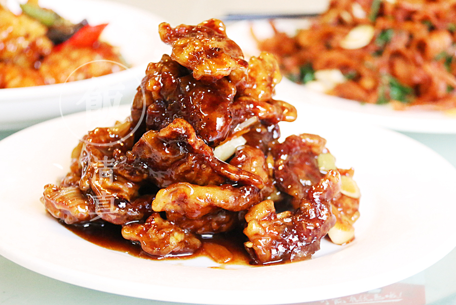 八塊雞的菜名可能會容易誤導大家,其實就是魚香焦炒雞塊。這是聚德香苑的獨家菜,是用去骨的雞腿肉做成的。這是一道色香味俱全的菜,一端上桌,就勾起食欲來。吃過魚香肉絲的一定能想象的來,這道菜口味偏酸甜,夾一塊放嘴里,先就是這包裹在炸雞塊上的酸甜味刺激味蕾,然后一口咬下去,雞肉外皮的香脆和內(nèi)里的酥嫩一并全部充斥口腔。感嘆之余,就是無法停箸。