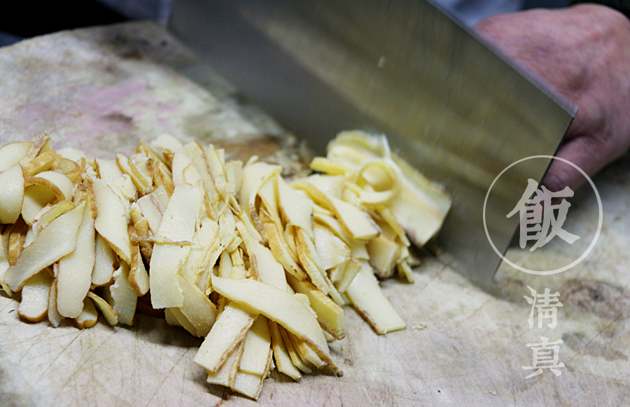 焦熘肉片與八塊雞的做法大致相似,只是其所用的是新鮮的羊肉。而在糖與醋的比例上,糖略多于醋,因此,比八塊雞更甜些。羊肉炸的很有嚼勁兒,牙好的年輕人一定很喜歡,越嚼越好吃的感覺最讓人喜歡。