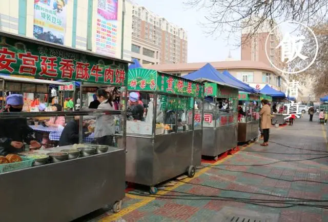 其實這條街并沒有名字,看起來是一條自發(fā)形成的街。沿著朝陽西路一直向里,就能到達。在朝陽西路路口,就已經(jīng)有零零散散賣各種特色小吃的小攤,比如像玉米面(俗稱鋼絲面)之類的。