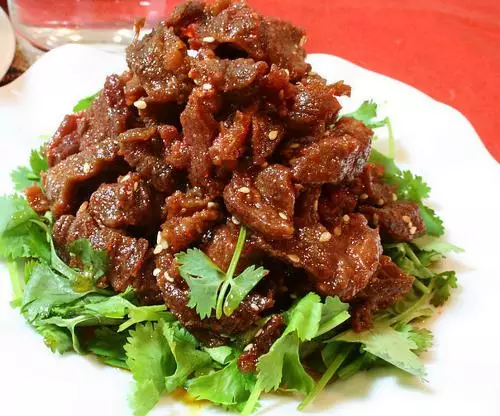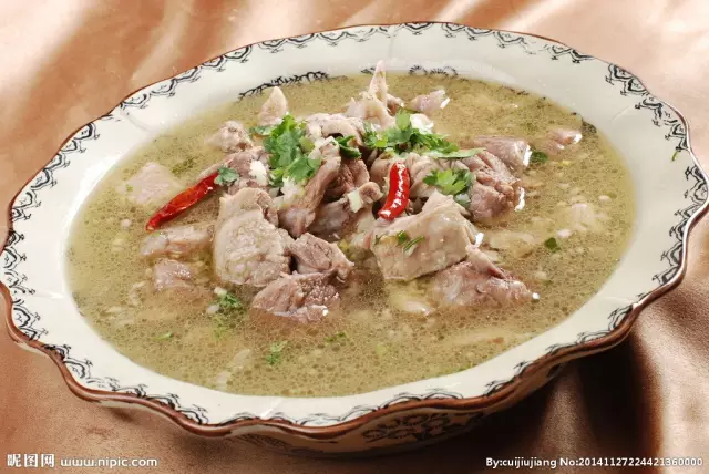 2、羊肉用開水汆去血污,倒入陶制盆內(nèi),加入姜、蔥段、蘿卜、開水(以沒過羊肉為限),再放在鍋內(nèi)的小鐵架上,鍋內(nèi)加適量的水(盆的下部分應(yīng)跑在水中),蓋緊鍋蓋,燒至肉爛時(shí)撇去浮油,撈去蔥、姜、蘿卜,吃時(shí)加入蔥絲、香菜、醋、胡椒粉、香油、味精、鹽等調(diào)味。