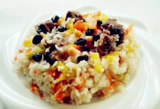 鷹嘴豆抓飯的做法也不復雜,由紅黃胡蘿卜、羊肉、洋蔥、大米等等燜制而成。