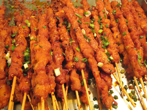 維吾爾族吃菜必須見肉,多為牛、羊、雞肉,烹調(diào)方法常用烤、煮、蒸、燜,習(xí)慣用胡椒、辣椒面、孜然、洋蔥等調(diào)料,還喜歡用黃油、蜂蜜、果醬、果汁、酸奶、馬奶等以提味增香,常輔以胡蘿卜配制。主要名菜有烤全羊、卡瓦甫(烤肉,包括整烤、串烤、鍋烤、餡餅烤)、烤疙瘩羊肉、羊肉丸子、羊肉羹、羊肉桃仁、手抓羊肉、手抓桃仁、烤南瓜等。維吾爾族日食三餐,早晨吃馕和各種果醬、甜醬,喝奶茶、油茶等;午飯多吃米面食品;晚餐一般吃馕、湯面之類。每餐飯量不求多,但求精細(xì),口味與蒙古族近似,特別重視飲食衛(wèi)生。