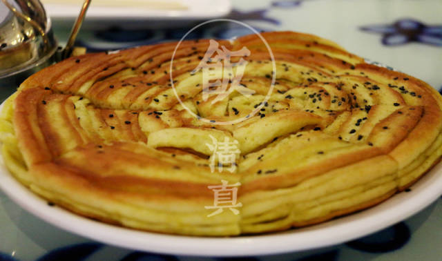 這是鍋盔,卷了油撒了芝麻的饃放進烤箱,出來后芝麻香味油香味一并撲面而來,上桌的鍋盔已經(jīng)切成了適中大小的塊,隨便拿一塊咬一口,舌齒間泛有淡淡的甜香。饃是西北餐桌上必不可少的東西,而鍋盔尤為受人喜愛。