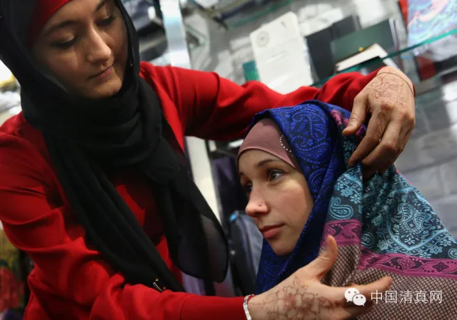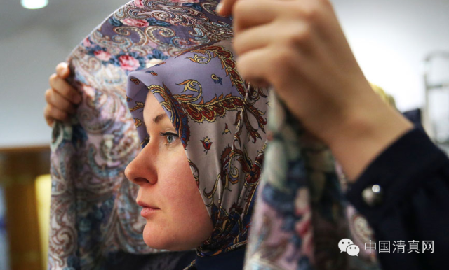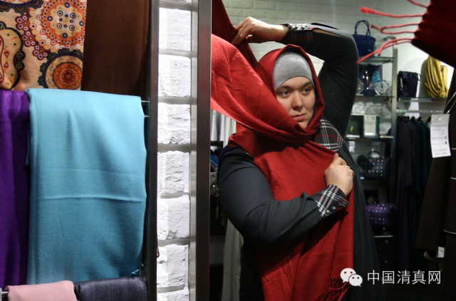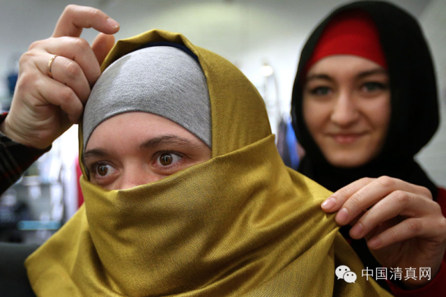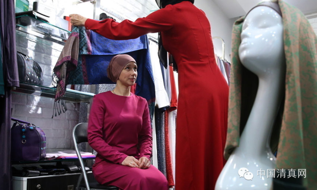 俄羅斯莫斯科,Nautilus購物中心的Irada店中,女顧客正在挑選穆斯林服飾。穆斯林女性服飾有很多講究,特別面罩、面紗,已成為其服飾的一種標(biāo)志。